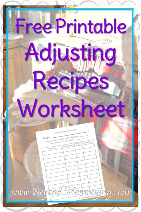 Cooking with Kids, Adjusting Recipes Printable Worksheet Beyond