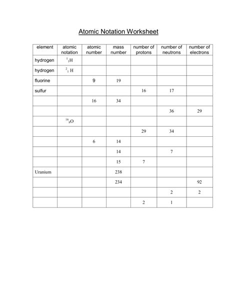 Atomic Notation Worksheet. # protons = atomic number # electrons = protons # neutrons = atomic. Web calculating the number of each particle in an atom: