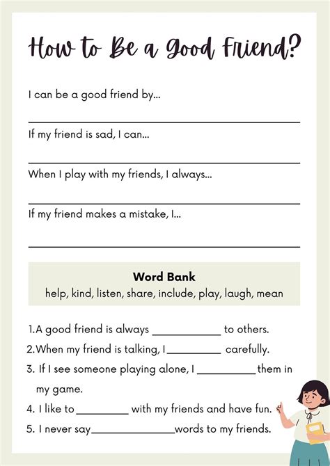 How To Be A Good Friend Worksheet. Web find a variety of resources to teach your students about friendship, such as how to identify a good friend, how to make and. They will be able to identify the.